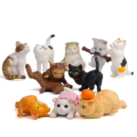 Mini Realistische Cartoon Kattenbeeld Spelen Dier Decoratieve Hars Sculptuur
